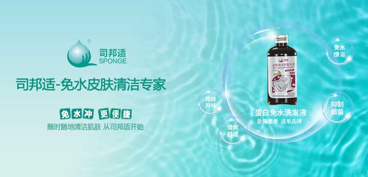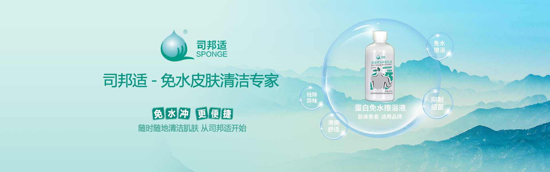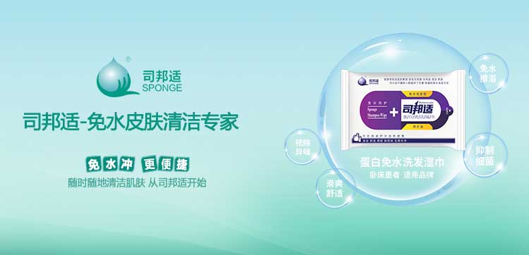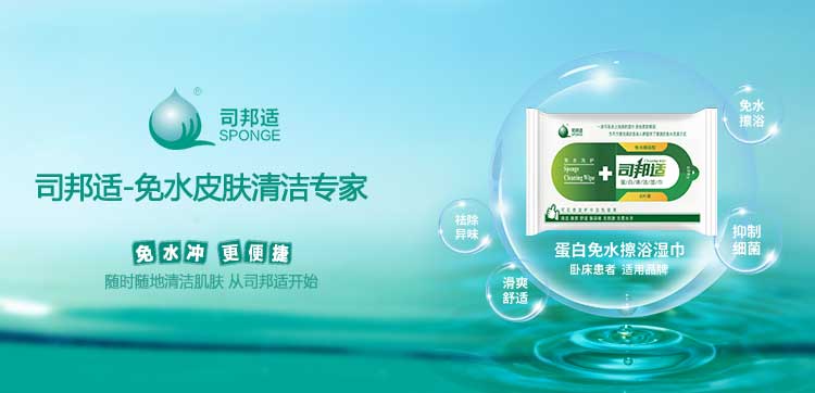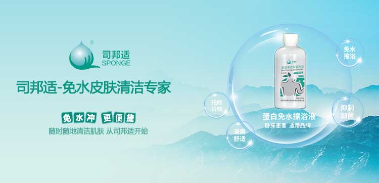 ? ? ? ?本公司研發(fā)的司邦適蛋白表面活性因子,不僅對人體皮膚及粘膜沒有刺激,同時具有對皮膚很強的清潔能力;可以祛除人體皮膚上的異味,并且具有較強的抑菌功效。使用后無需用水沖洗皮膚仍感到舒適爽滑;基于上述原因我們研發(fā)的司邦適免水清潔系列產品。主要適用于各種主觀或者客觀上不方便全身或局部皮膚清潔的人群。